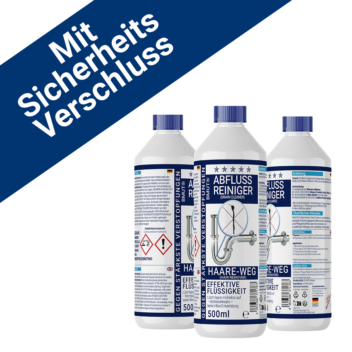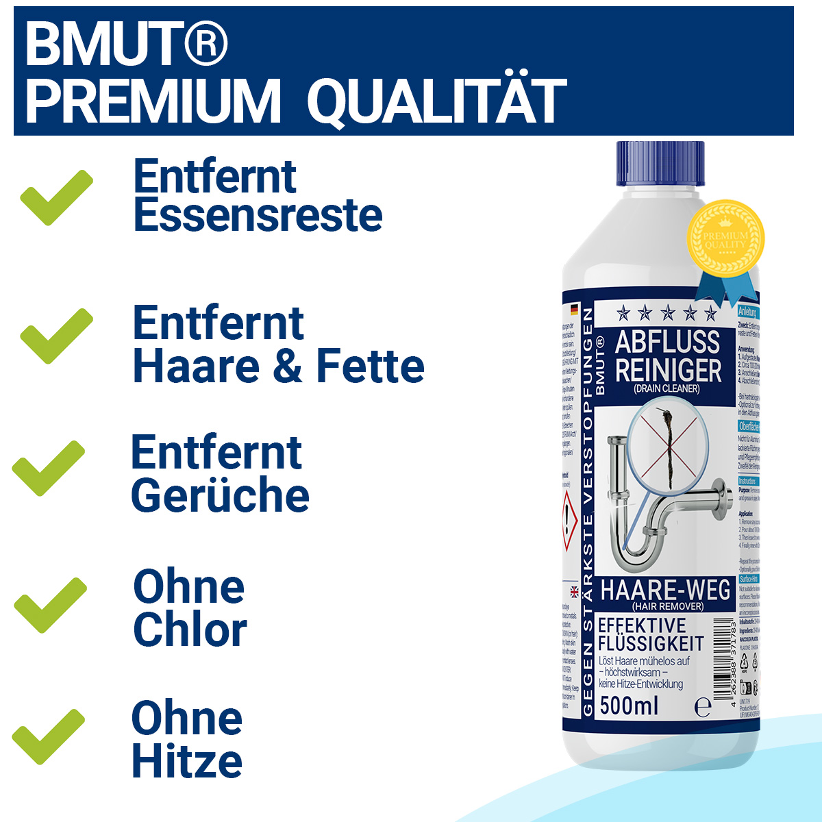 ✔ [VIELSEITIGE ANWENDUNG – Für Küche, Bad & alle Rohrarten] Der BMUT Abflussreiniger eignet sich für sämtliche Abflüsse im Haushalt – egal ob Waschbecken, Spüle, Dusche, WC, Badewanne oder Siphon. Funktioniert zuverlässig in Edelstahl-, Kunststoff-, Guss- und Tonrohren und beseitigt typische Verstopfungen wie Haare, Seifenreste, Fette und Essensrückstände.