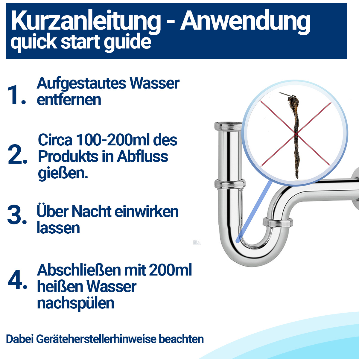 ✔ [MAXIMALE REINIGUNGSKRAFT – Löst hartnäckige Blockaden] Die hochkonzentrierte Formel zersetzt organische Ablagerungen besonders schnell und sorgt dafür, dass selbst fest sitzende Verstopfungen in alten oder engen Rohrleitungen effektiv gelöst werden. Wirkt auch bei stehendem Wasser, wenn nichts mehr abfließt.